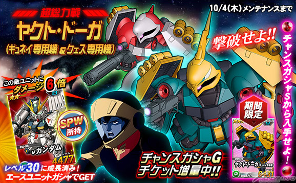 - 最大2体まで入手可能!「★4 ヤクト・ドーガ(クェス専用機)」ゲットのチャンス!