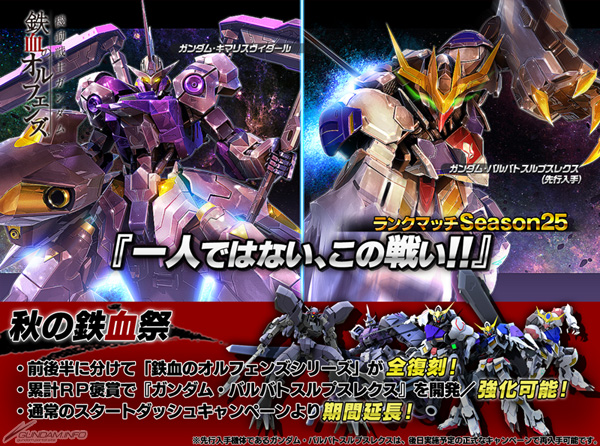 - ランクポイントを獲得して「ガンダム・キマリスヴィダール」と「ガンダム・バルバトスルプスレクス」を入手せよ!「一人ではない、この戦い!!」キャンペーン実施!