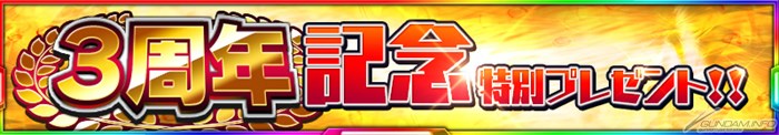 3周年を記念して、ユーザー全員に「Ωクリスタル」100個と、Ver.4.0から実装されたパイロットパーツの育成素材をプレゼント!ログインをお忘れなく!