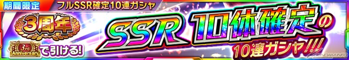 期間中にログインするともらえる「3rd Anniversaryチケット」で引ける、10体すべてSSR確定の記念10連ガシャが登場!無料でSSR10体を手に入れよう!
