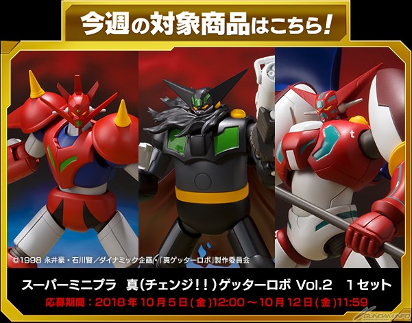3周年を記念して、3週連続Twitterキャンペーンを開催!第1弾では、「真ゲッター1」、「ゲッタードラゴン」、「ブラックゲッター」がセットになったフィギュア「スーパーミニプラ 真(チェンジ!!)ゲッターロボ Vol.2」を、抽選で1名にプレゼント!