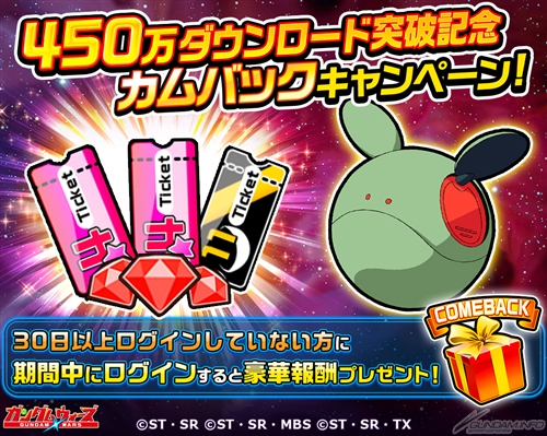 450万ダウンロード突破記念カムバックキャンペーン開催!