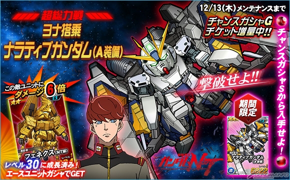 - エースユニットガシャラインナップに「★5 ナラティブガンダム(A装備)」が登場!
