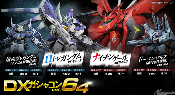 - 新機体登場!「DXガシャコン VOL.64」配信開始!「Hi-νガンダム」や「ナイチンゲール」などが参戦!