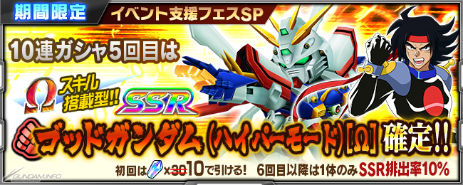 - 「イベント支援フェスSP」開催中!「ゴッドガンダム(ハイパーモード)[Ω]」が特効ユニットで再登場!