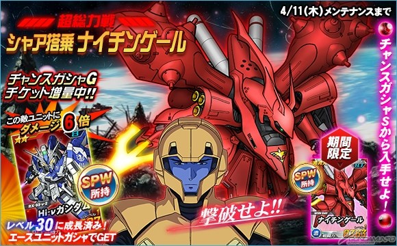 - 超総力戦に「シャア搭乗ナイチンゲール」が登場!チャンスガシャSからは「★3 ナイチンゲール」を獲得するチャンス!