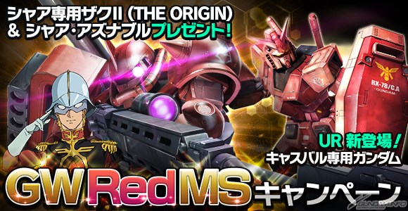 - GWログインボーナス開催!「【SR】シャア」と「【SR+】シャア専用ザクII」が獲得可能!