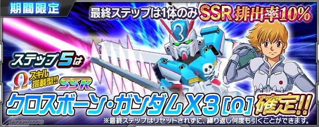 - 「7月特別ガシャ」開催!「クロスボーン・ガンダムX3[Ω]」がステップ5で確定入手できる!