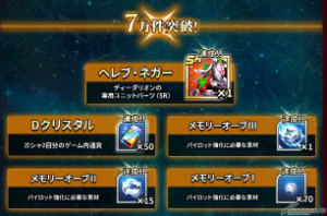 「スーパーロボット大戦DD」では、事前登録件数が30万件を突破した。これにより、アプリリリース時にインストールした全てのユーザーにゲーム内報酬が配布される。