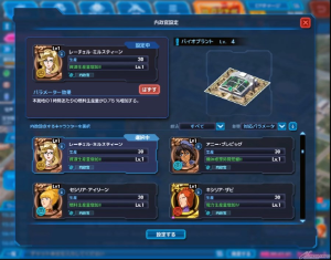 「内政官」や「パイロット」、「サポート」キャラクターとして数多くの原作キャラクターが登場するが、これらキャラクターは課金で入手するアイテムではなく、ゲーム内で様々な条件を満たすと回せる「キャラメダルガシャ」によって収集することが可能となっている。