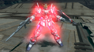 B装備のサブ射撃は、有線式遠隔攻撃端末を飛ばしてビームを発射する攻撃で、遠距離からでも敵機にプレッシャーを与えることが可能。B装備の特殊格闘でNT-Dを発動、発動中はサブ射撃、特殊射撃の武装が変化、射撃戦で圧倒的な優位に立つことができる。