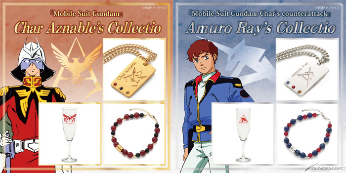プレミアムバンダイ内「バンコレ!」は、本日1月12日(木)12:00より、『機動戦士ガンダム』のシャア・アズナブルと『機動戦士ガンダム 逆襲のシャア』のアムロ・レイをモチーフにした「ネックレス」と「ストーンブレスレット」、「グラス」の予約受付をスタートする。いずれも2月発送予定。