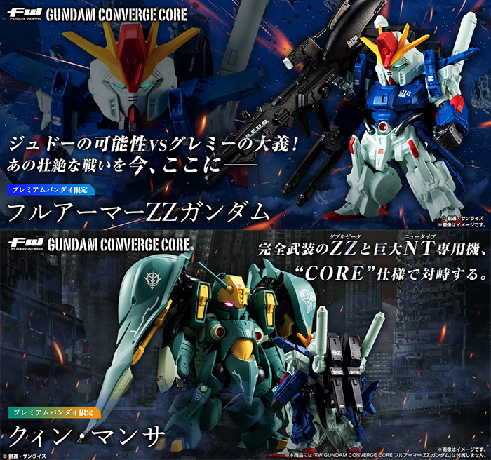 ガンダム食玩「FW GUNDAM CONVERGE」の特別弾となる「CORE」シリーズに、『機動戦士ガンダムΖΖ』の終盤に激突した「フルアーマーΖΖガンダム」と「クィン・マンサ」が登場。