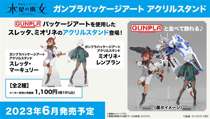 ガンプラのパッケージアートを使用した「スレッタ」と「ミオリネ」のアクリルスタンドが6月発売決定!