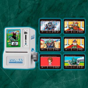 手のひらサイズのカードダス自販機の筐体とミニミニカードがセットになった「ミニミニカードダス」が復活。