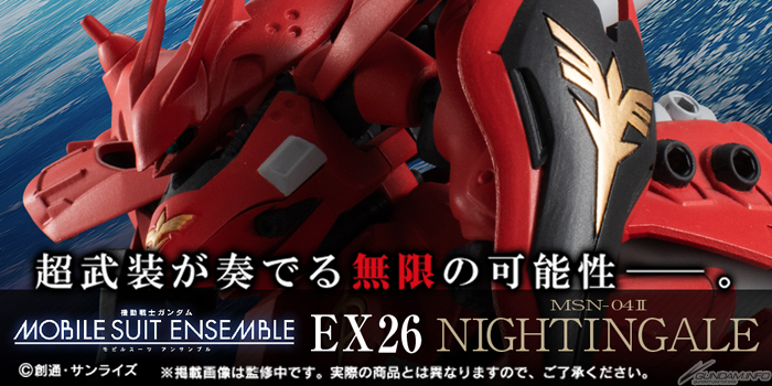 “武装”をテーマにしたガシャポンアイテム「機動戦士ガンダム MOBILE SUIT ENSEMBLE EX」シリーズに、小説「機動戦士ガンダム 逆襲のシャア ベルトーチカ・チルドレン」の「ナイチンゲール」が再登場。