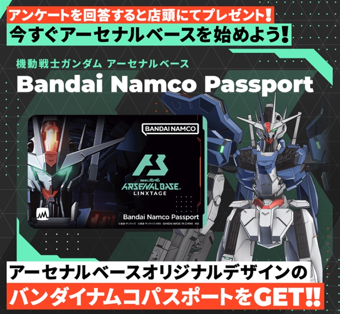 今週末5月27日(土)より、「ガンダム・エアリアル(改修型)」のアーセナルベースオリジナルデザインバンダイナムコパスポートがもらえるプレゼントキャンペーンを開催。