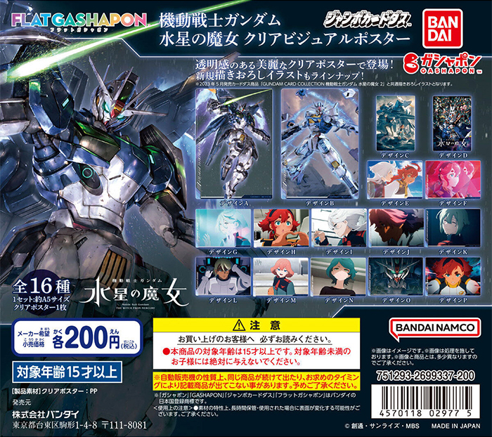 ジャンボカードダス/フラットガシャポン「機動戦士ガンダム 水星の魔女 クリアビジュアルポスター」本日より順次発売!