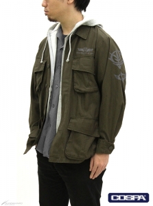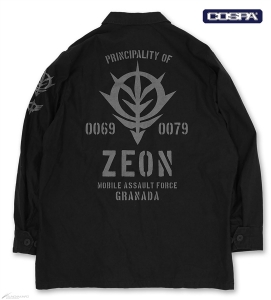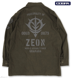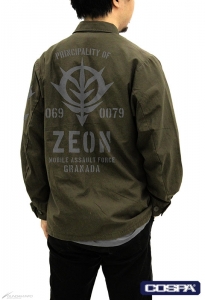 ジオン公国軍をイメージしたライトに着られる収納力抜群のアウター。薄手の軽い生地で作られており、ジャケットまたはシャツとしてもオススメで、3シーズン活躍できる。4つあるポケットにはマチを設け、収納力を高めた作りが特徴となっている。