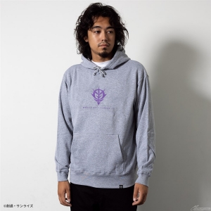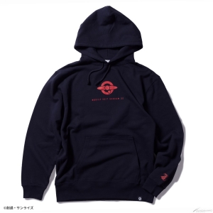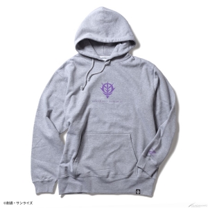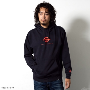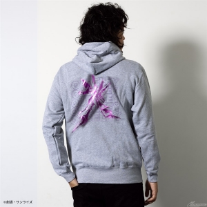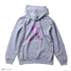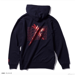 フロントはシンプルにロゴをデザインし、バックは躍動感あるモビルスーツをインパクトのある箔プリントで表現したプルオーバータイプのパーカー。袖口にもワンポイントで「ΖΖ」の文字が配置されている。