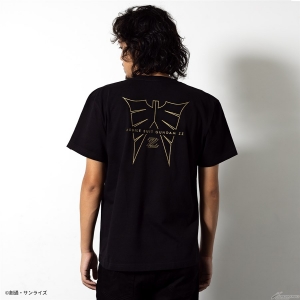 作品を感じられるデザインの半袖Tシャツ。ブラックのハマーン・カーン マスク柄とホワイトのΖΖロゴ ジュドー・アーシタ柄の2種で展開される。