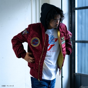 同時に店頭販売となる「STRICT-G ALPHA MA-1 NATUS『機動戦士ガンダムZZ』」のフードを取り外し、組み合わせて着用すれば違ったコーディネートも楽しめるアイテムとなっている。