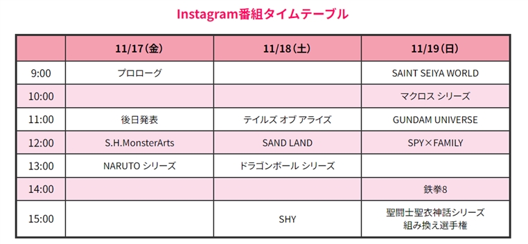 ガンダムシリーズからは11月19日(日)11:00 より「GUNDAM UNIVERSE」のInstagram番組が配信予定となっているので、お見逃しなく。