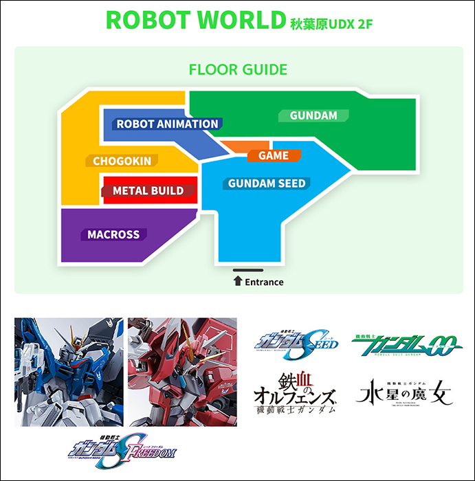 本イベントでは、ベルサール秋葉原の2フロアに秋葉原UDXを加えた2会場3フロアを使用し、約700アイテムを一挙展示。ガンダムシリーズの各種アイテムは、秋葉原UDXのROBOT WORLDを中心に展示される。