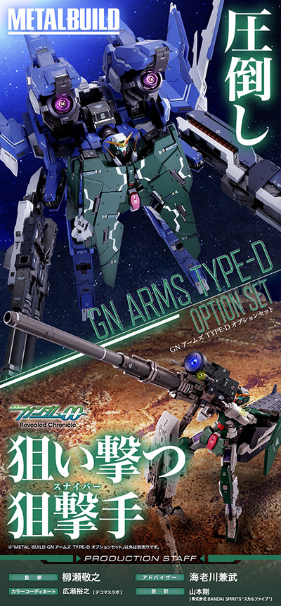 メカデザイナー柳瀬敬之氏の監修の下、GNツインライフル、大型ミサイルコンテナをMETAL BUILDならではのアレンジにより、超高高度射撃装備と、ミサイルコンテナユニットとしてアレンジ。