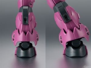 独特なフォルムとボリューム感を再現した造形で、背面の大型リアスカートは両端が可動することで、ポージングを妨げない仕様となっている。