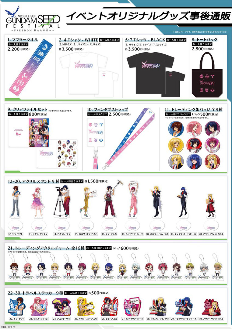 「機動戦士ガンダムSEED FESTIVAL ~FREEDOM 新たな未来へ~」オリジナルグッズの事後通販がスタート!オフィシャルレポートも到着!
