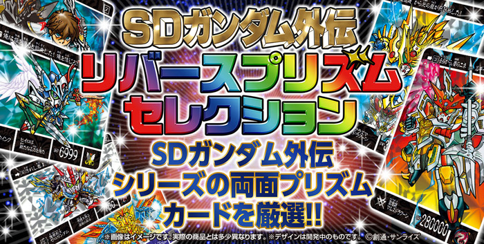 SDガンダム外伝シリーズ「ナイトガンダム物語」「黄金神話」「鎧闘神戦記」に登場した、表裏がプリズムカード表面となる「両面(リバース)プリズムカード」を厳選したスペシャルなセットアイテム。