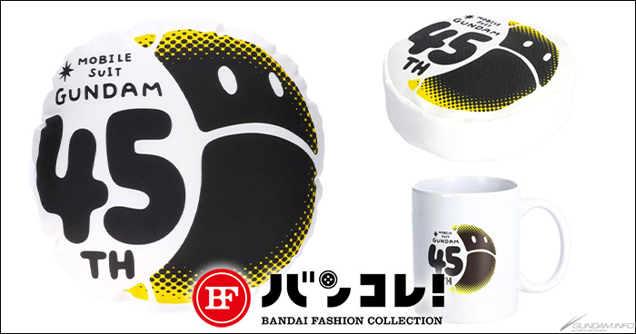ガンダムシリーズ45周年ロゴをデザインしたクッション、丸型ポーチ、マグカップの予約が本日スタート!