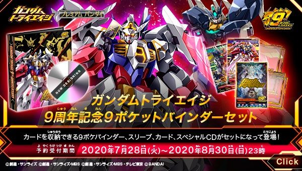 プレミアムバンダイでは、本日7月28日(火)より「ガンダムトライエイジ9周年記念9ポケットバインダーセット」の予約受付がスタートした。11月発送予定、価格は9,900円(税込)。