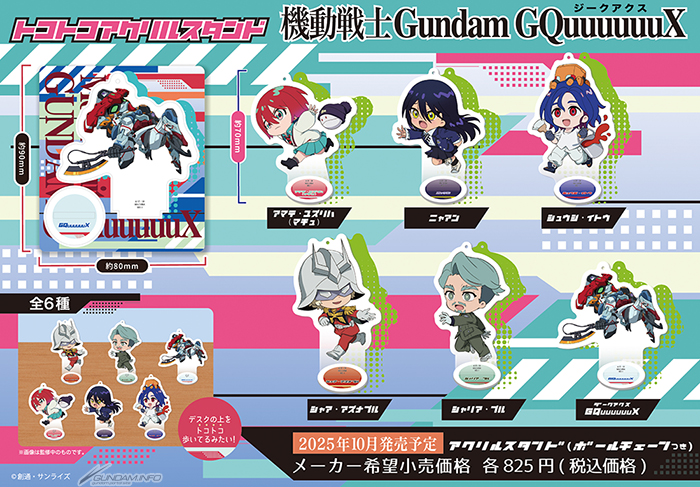 「トコトコアクリルスタンド 機動戦士Gundam GQuuuuuuX 」が、10月下旬に発売されることが決定した。全6種、価格は各825円(税込)。