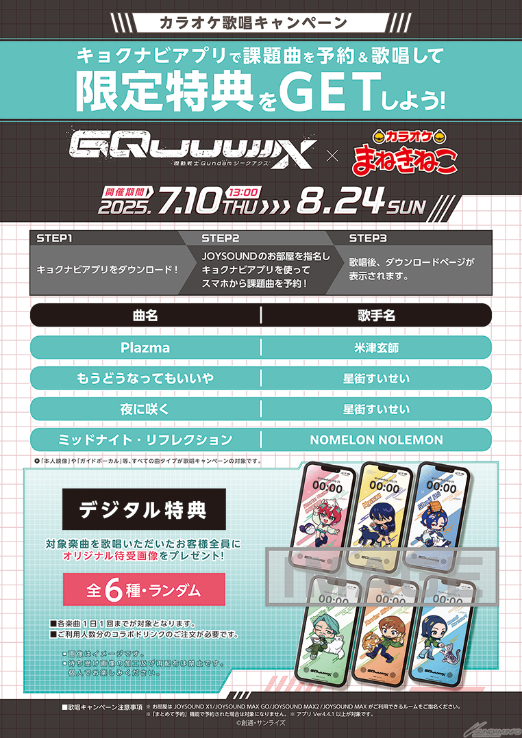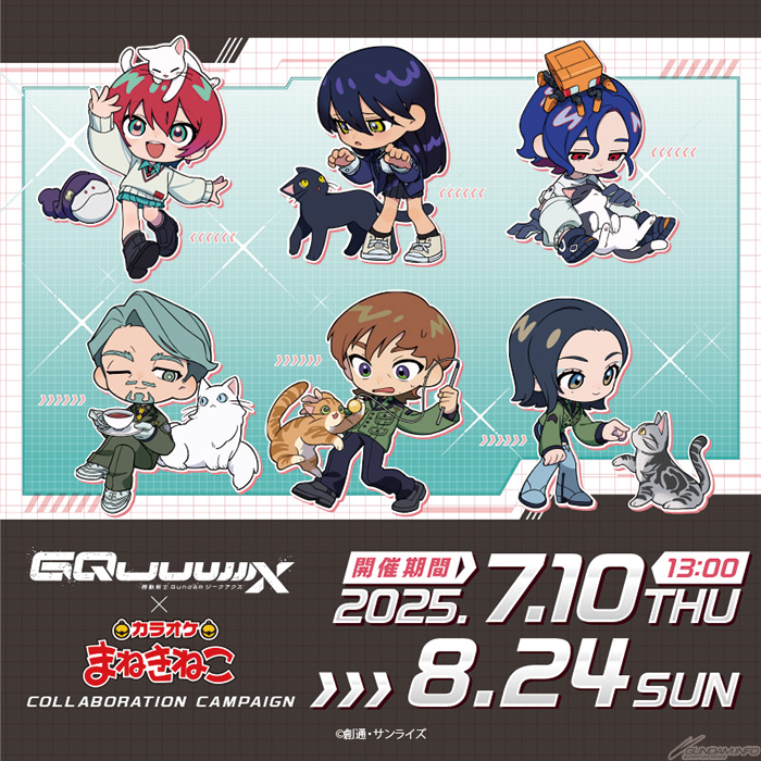 カラオケまねきねこおよそ100店舗にて『機動戦士Gundam GQuuuuuuX 』コラボキャンペーンが、7月10日(木)より開催されることが決定した。
