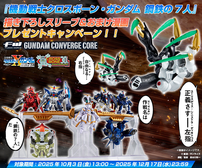 「FW GUNDAM CONVERGE CORE 機動戦士クロスボーン・ガンダム 鋼鉄の7人 キャンペーン」開催中!