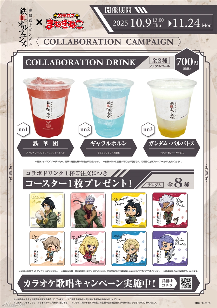 『機動戦士ガンダム 鉄血のオルフェンズ』×カラオケまねきねこコラボ、10月9日より開催決定!