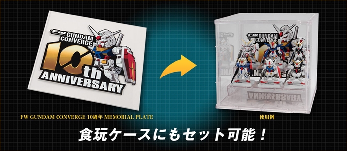 「FW GUNDAM CONVERGE 10周年 UNIVERSAL CENTURY SET」または「FW GUNDAM CONVERGE 10周年 ANOTHER CENTURY SET」と、「食玩ケース」をセットで購入した人を対象に、食玩ケースとあわせて楽しめる「FW GUNDAM CONVERGE 10周年 MEMORIAL PLATE」がプレゼントされるキャンペーンも同時スタート。