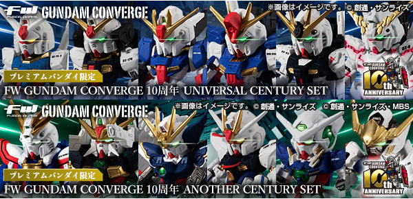 本シリーズアイテムの10周年を記念して、FW GUNDAM CONVERG 10周年「UNIVERSAL CENTURY SET」と「ANOTHER CENTURY SET」が、プレミアムバンダイ限定商品アイテムとして予約受付中。
