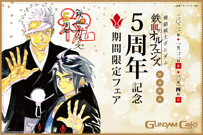 『機動戦士ガンダム 鉄血のオルフェンズ』放送開始5周年を記念して、特別なメニューやノベルティ、グッズなどを展開する期間限定フェアが、1月22日(金)より開催される。