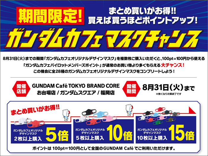 ※ポイントアップの対象はガンダムカフェオリジナルデザインマスクのみです。