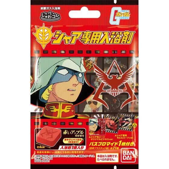 入浴剤とバスブロマイドがセットになった「しゅわコレ」シリーズより「機動戦士ガンダム シャア専用入浴剤」が、本日12月13日(月)より、全国の量販店・ドラッグストアなどにて発売される。価格は330円(税込)。