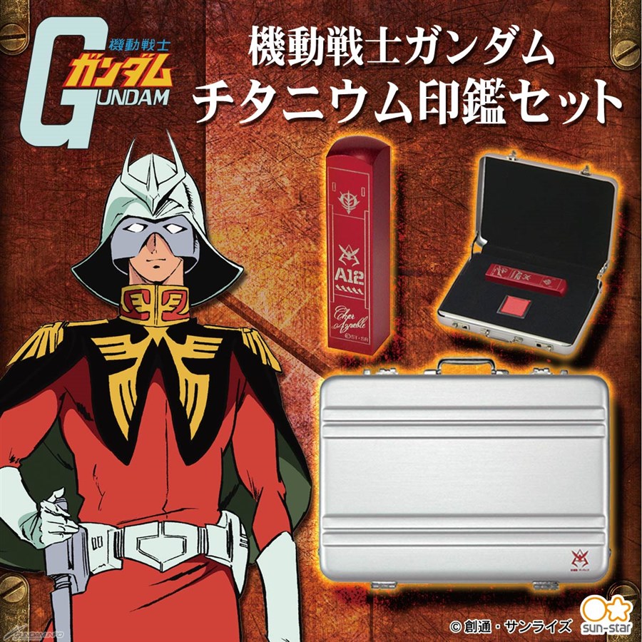 『機動戦士ガンダム』よりシャア・アズナブルをイメージした、赤い純チタン製で高級感のある印鑑セットが登場。