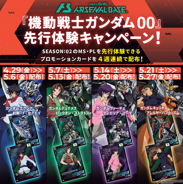 4月29日(金・祝)より、「SEASON:02」に登場する『機動戦士ガンダム00』のガンダムマイスターとそれぞれのMSをいち早く体験できる、「『機動戦士ガンダム00』先行体験キャンペーン」がスタート。