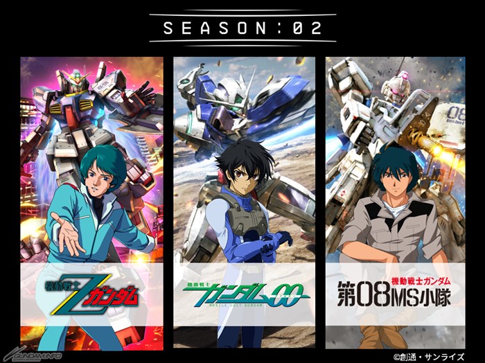 「SEASON:02」は、『機動戦士Ζガンダム』『機動戦士ガンダム00』『機動戦士ガンダム 第08MS小隊』の3作品を中心に、総勢30以上のモビルスーツとパイロットが新規登場。