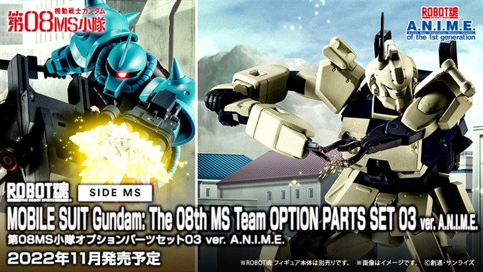 最先端の“CAD技術”と造形職人の“匠の技”が織りなすロボットフィギュア「ROBOT魂 ver. A.N.I.M.E.」より、「第08MS小隊オプションパーツセット03」が11月に発売されることが決定した。価格は5,500円(税込)。