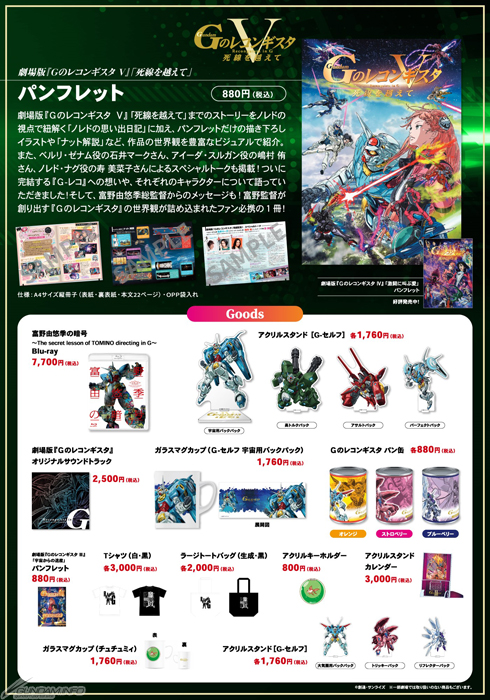いよいよ明日8月5日(金)より全国で公開される劇場版『Gのレコンギスタ V』「死線を越えて」の上映劇場にて、パンフレットやドキュメンタリーBlu-ray「富野由悠季の暗号 ~The secret lesson of TOMINO directing in G~」などが販売される。