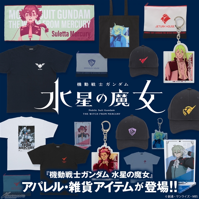 本日よりMBS/TBS系全国28局ネットで放送がスタートした『機動戦士ガンダム 水星の魔女』より、劇中に登場する学園や寮のマークやキャラクターをデザインしたアパレル・雑貨アイテムが登場。