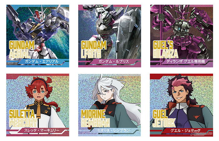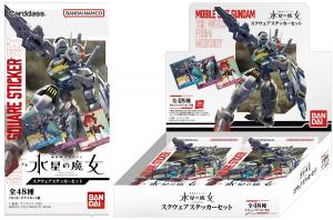MBS/TBS系全国28局ネットで毎週日曜17:00から好評放送中の『機動戦士ガンダム 水星の魔女』のスクウェアステッカーセットが、玩具売場などで販売される「パック」(税込み220円)と、カードダス自販機で展開される「自販機」(税込み200円)の2形態で登場。